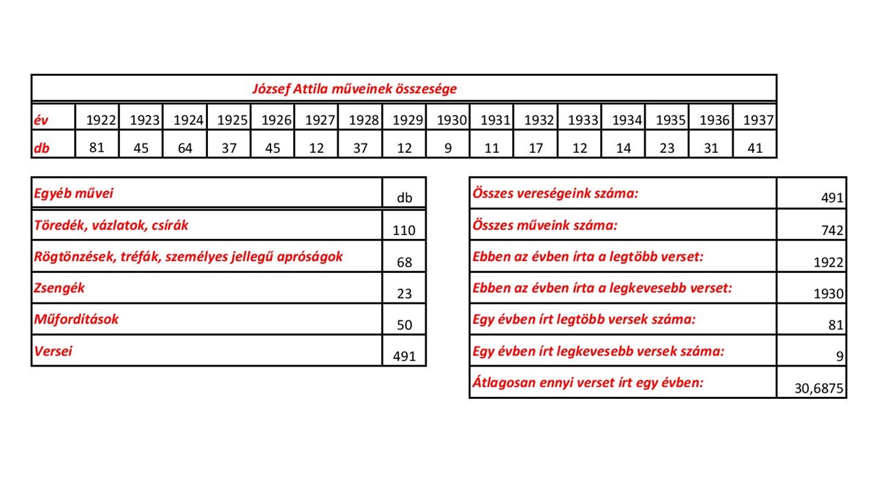 József Attila versek statisztikája